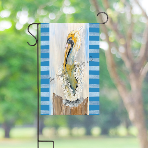 A vibrant assortment of custom-designed coastal decor and accessories. Featuring hand-painted crabs, oysters, pelicans, shrimp, and sea turtles, this collection captures the charm of seaside living through one-of-a-kind earrings, tote bags, tea towels, ornaments, door hangers, paintings, garden flags, and interchangeable toppers.