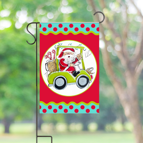 Santa on Golf Cart | Custom Garden Flags
