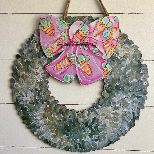 Pink Bow with Carrots | Custom Interchangeable Wreath Attachment