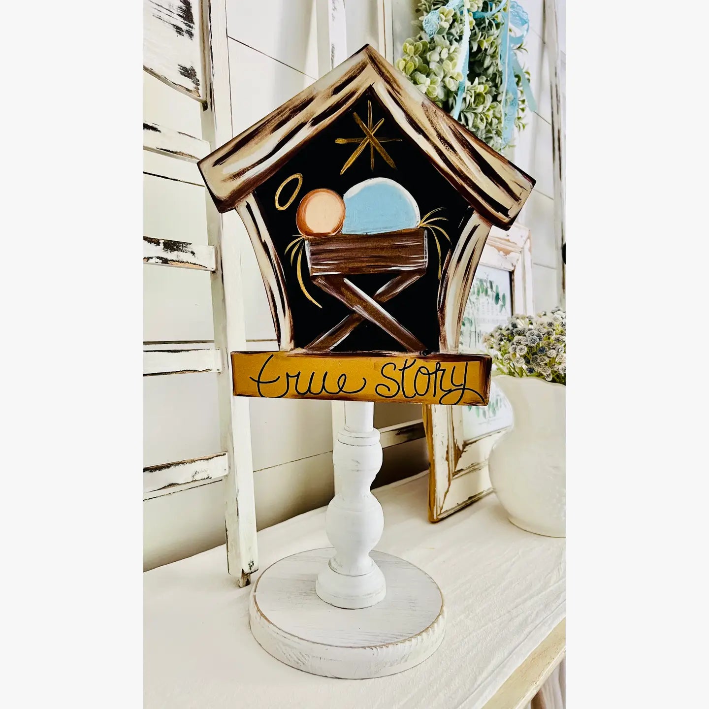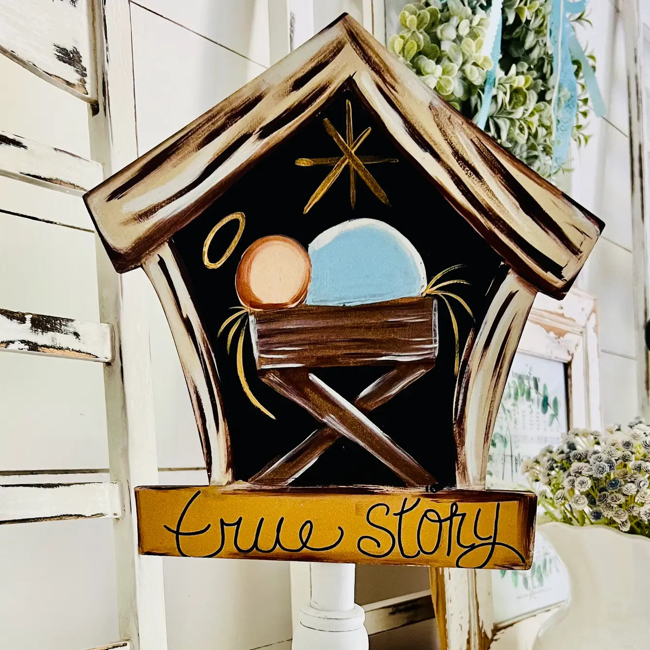Our toppers are custom-designed, hand-painted works of art, UV-printed directly onto wood for vibrant colors and lasting quality. Each topper comes with a hand-glued backing that fits easily into the Glory Haus base (sold separately). If you already own a Glory Haus base, feel free to use it with our toppers.